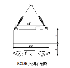 四、RCDB系列懸掛盤(pán)式自冷電磁除鐵器主要技術(shù)參數(shù)、外形尺寸 執(zhí)行標(biāo)準(zhǔn):JB/T7689