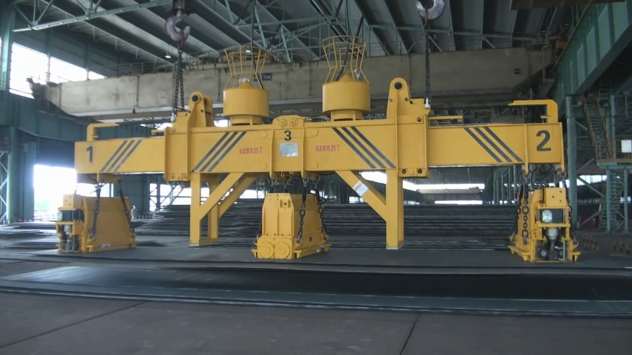 兩臺以上起重永磁鐵組合工作時,起重永磁鐵需懸掛于吊梁上(吊梁有固定型和伸縮型),吊梁再懸掛于行車吊鉤上。
