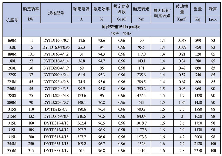 一體機型號由系列代號、規格代號、轉速代號、等級代號和環境代號五部分組成。